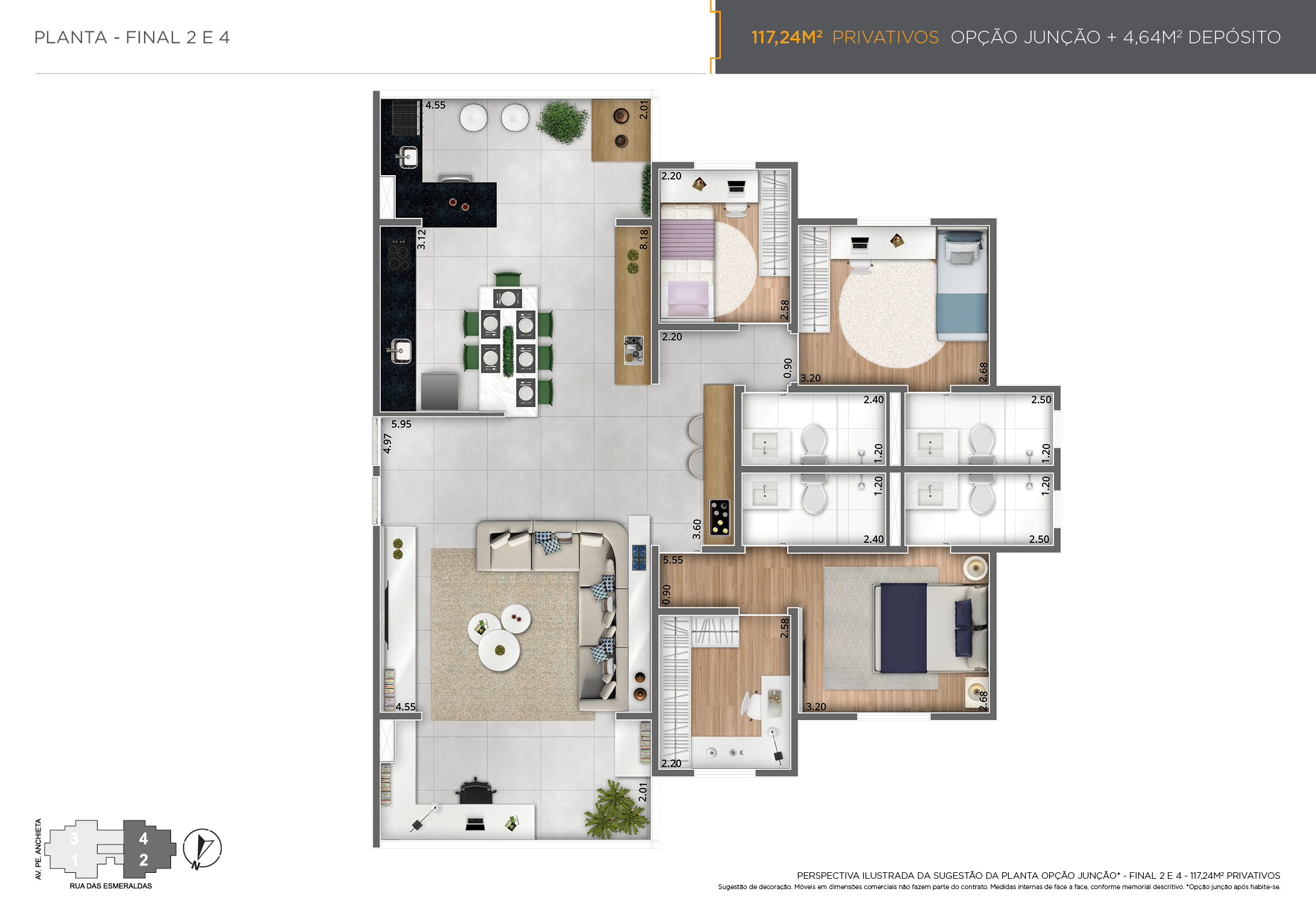 • Tipologia: 2 dorms (1 suíte), terraço gourmet, 1 ou 2 vagas com depósito privativo