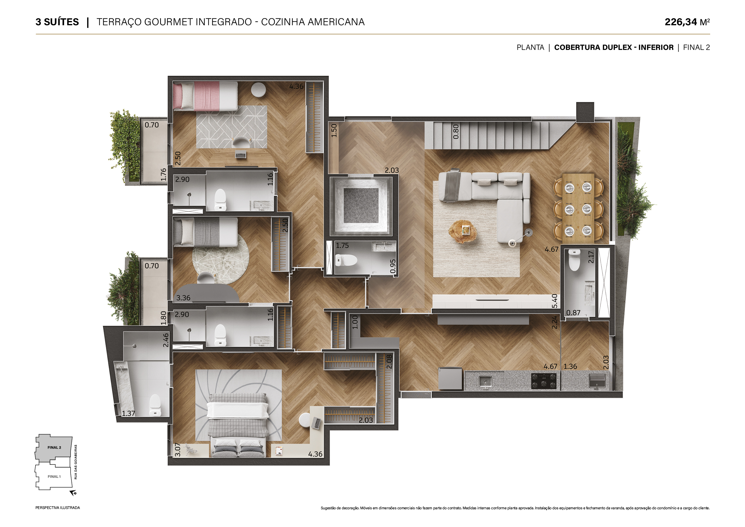 Cada ambiente do Le Rêve foi cuidadosamente pensado para oferecer amplitude, fluidez e privacidade. As plantas valorizam o convívio, trazem integração entre os espaços e garantem o máximo aproveitamento da iluminação natural. Escolha o formato que mais combina com seu estilo de vida e descubra como é possível unir estética, conforto e bem-estar em um único projeto.