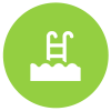 Pontos de água quente nos chuveiros, torneiras dos banheiros e pia da cozinha